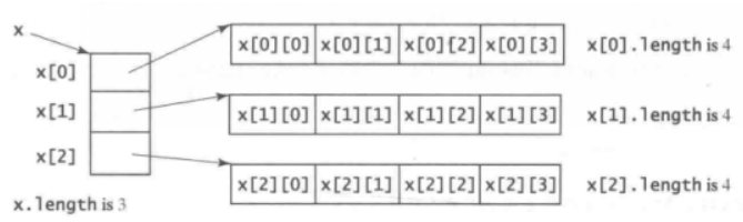 每一个n维数组,可以看作n-1维数组的数组,其中每个元素可以看作n-1维数组的引用: