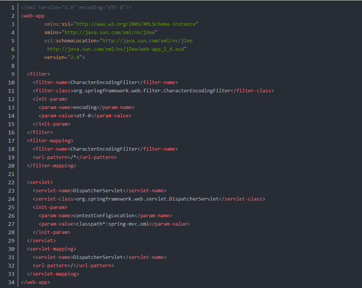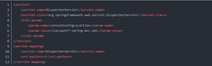 3.web.xml中配置SpringMVC核心控制器,用于将请求转发到对应的具体业务处理器Controller中(等同于Servlet配置)
