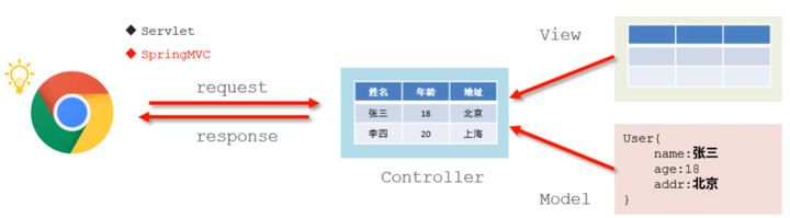 Controller(控制器):处理用户交互的调度器,用于根据用户需求处理程序逻辑