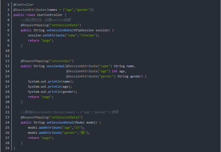 作用:绑定请求Session数据与对应处理方法形参间的关系