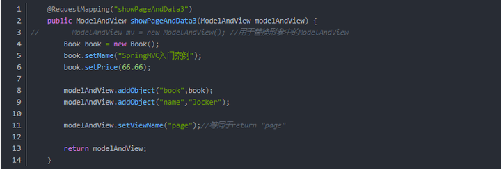 方式三:使用ModelAndView类型形参进行数据传递,将该对象作为返回字传递给调用者
