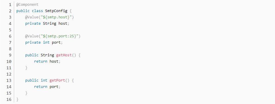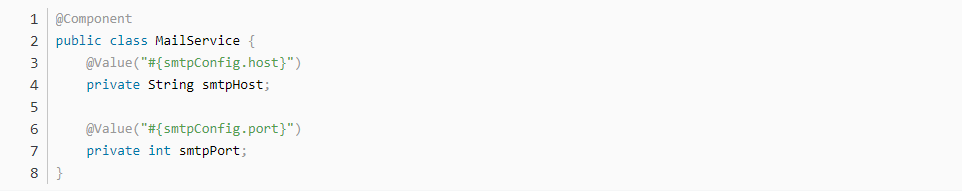 然后,在需要读取的地方,使用#{smtpConfig.host}注入: