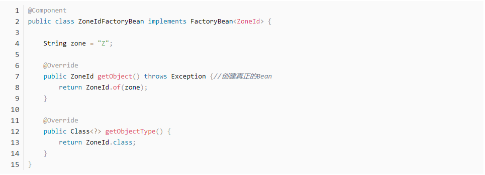 如果一个Bean不在我们自己的package管理之内,例如ZoneId,如何创建它?