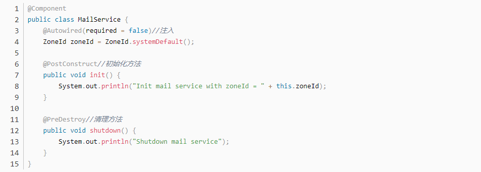 在Bean的初始化和清理方法上标记@PostConstruct和@PreDestroy: