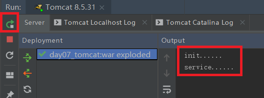 再次访问http://localhost:8080/day07_tomcat/demo2,则只输出service......