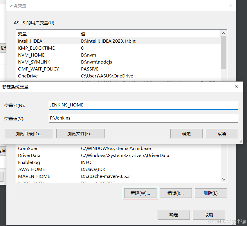单独创建一个文件夹F:\Jenkins存放war包进行运行,在运行之前可以创建一个环境变量,这样启动的时候安装的文件就会在指定的环境变量下边,如果不创建环境变量则默认会放在C盘面;