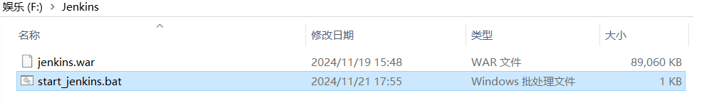 在创建的文件夹里写一个运行脚本start_jenkins.bat