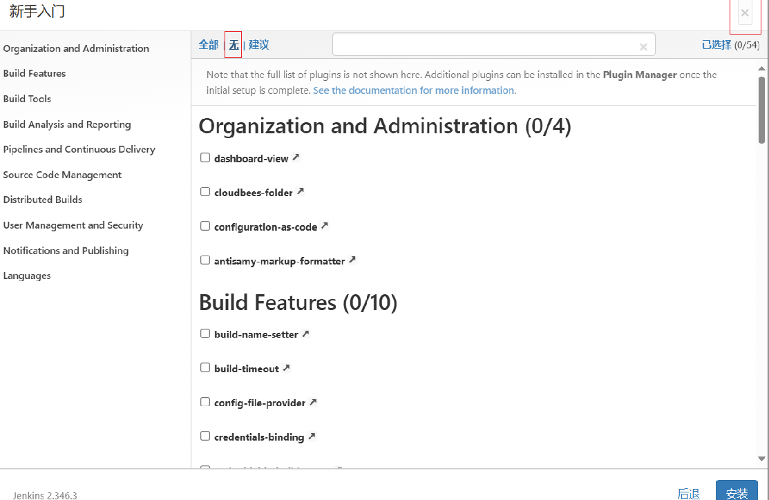 选择插件来安装,因为使用“安装推荐的插件”,默认自带的依赖库正常情况下下载不下来,或者比较慢,有的可能也用不上;失败没关系,可以先跳过。后期配置国内的镜像仓库后再去安装。