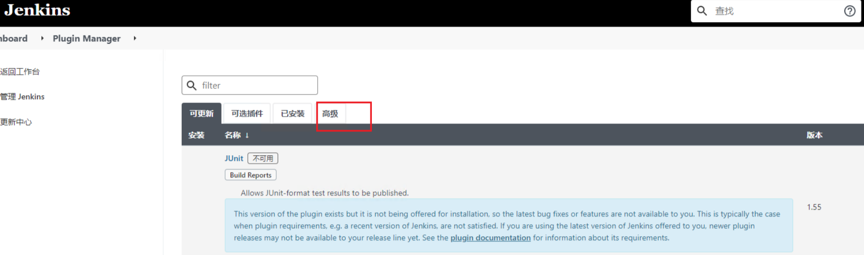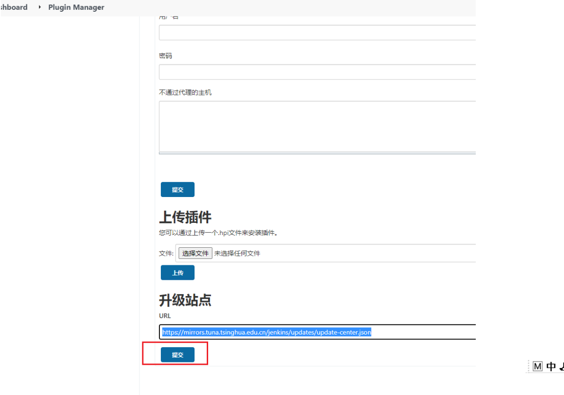 修改站点为:https://mirrors.tuna.tsinghua.edu.cn/jenkins/updates/update-center.json