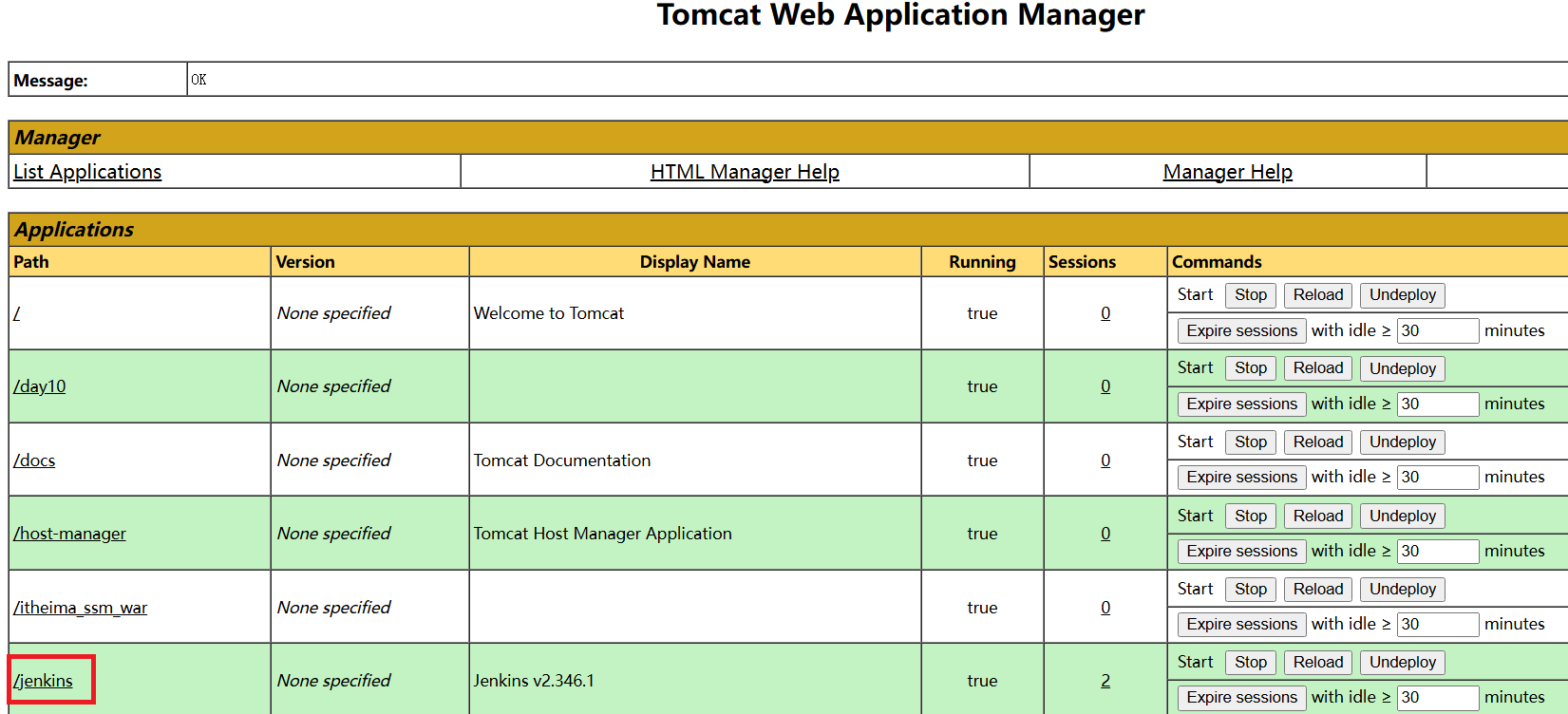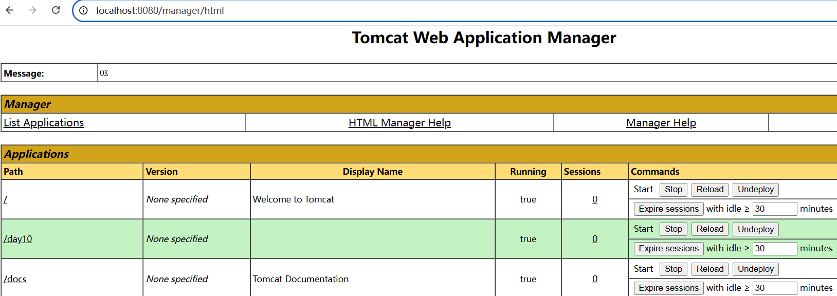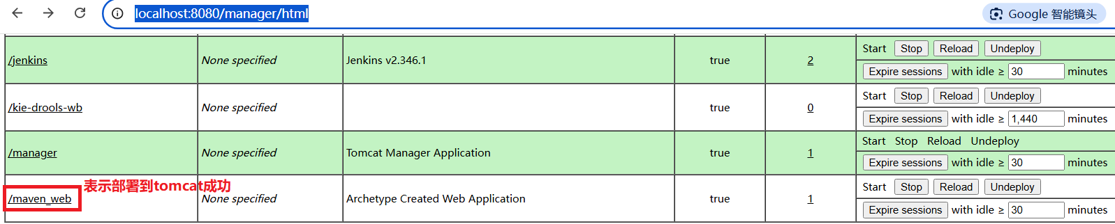 部署成功,浏览器访问http://localhost:8080/manager/html,能看到maven_web