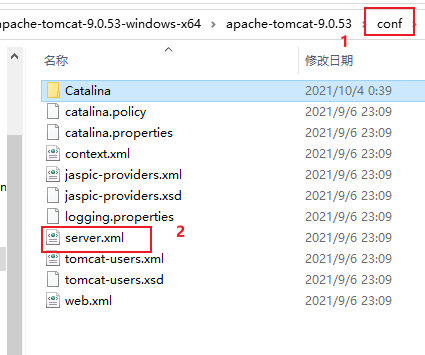 4, 如果已经开了一个一个tomcat服务器,我们再启动可能就会出错,因为会出现端口被占用。修改端口号打开conf--> server.xml。找到8080,修改自己喜欢且不被占用的端口号