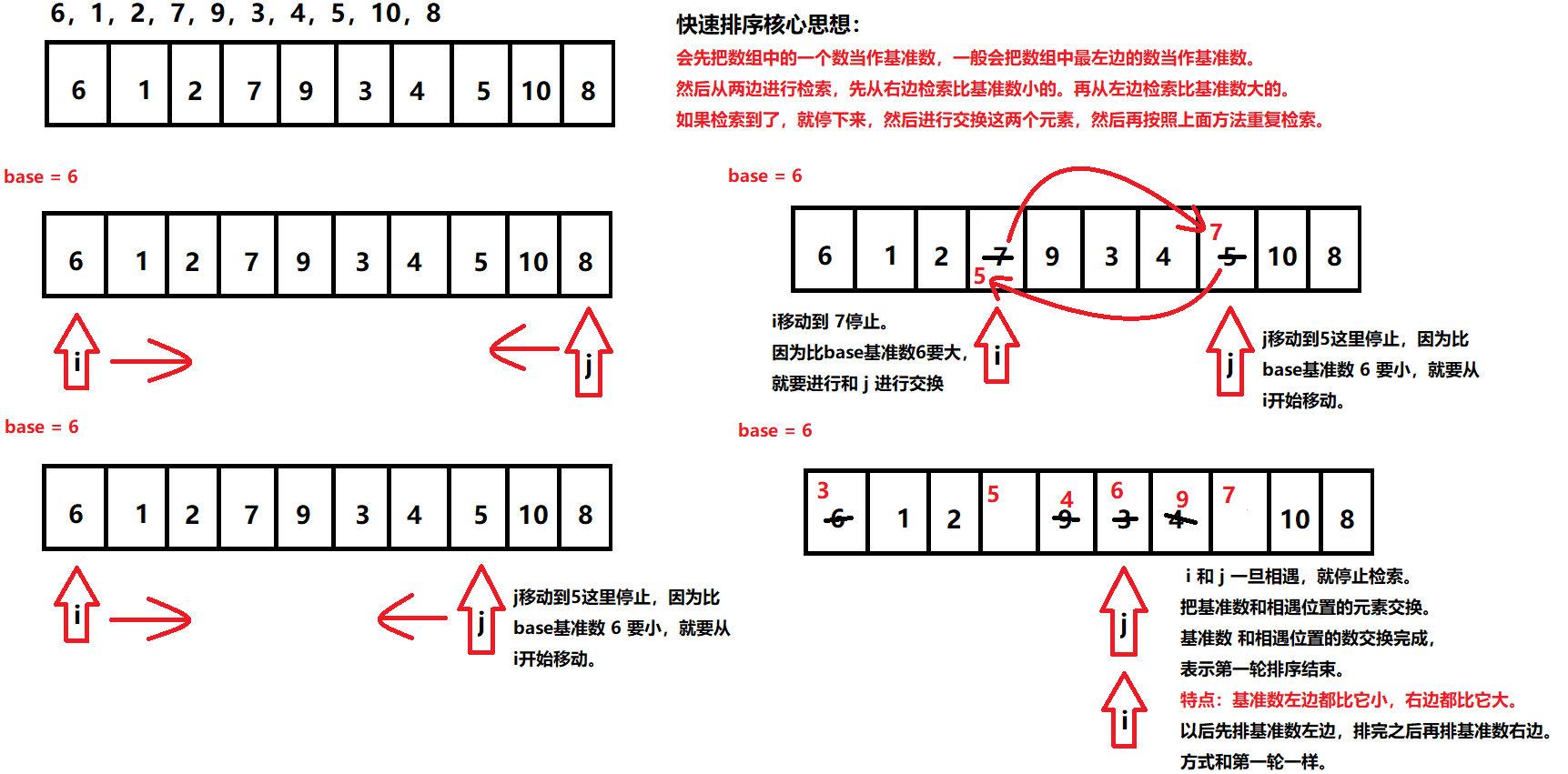//如果i 和 j 相遇了,就交换了基准数这个元素和相遇位置的元素