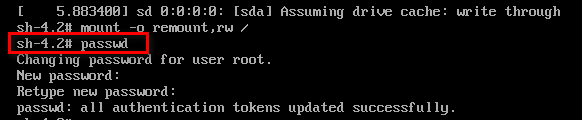 7:继续在光标闪烁的位置中,输入:exec /sbin/init (注意:exec 与 / 后面有一个空格),完成后按键盘的回车键(enter),等待系统自动修改密码(提示:这个过程时间可能有点长,耐心等待),完成后,系统会自动重启,新的密码生效了。