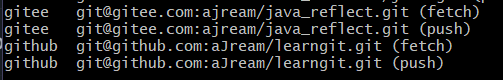 git remote add github git@github.com/learngit.git git remote add gitee git@gitee.com:ajream/java_reflect.git -