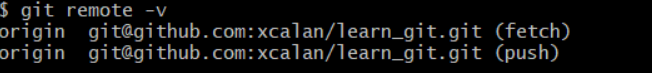 在本地仓库执行git remote -v,可以查看当前本地仓库与远程仓库的关联信息,如下图所示: