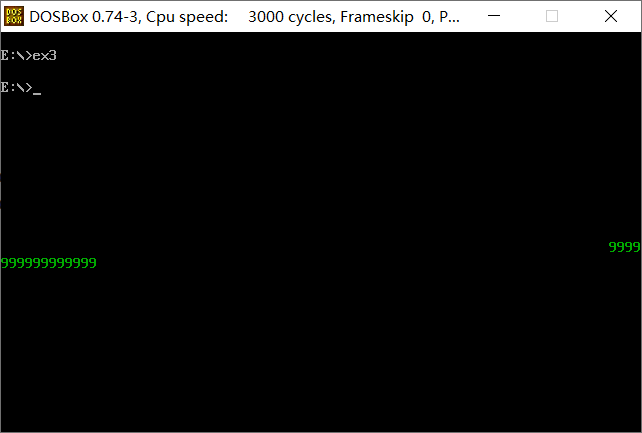 把ex2.asm中line9 mov cx, 4 改成 mov cx, 8 ,保存后重新汇编、链接、运行并观察结果:
