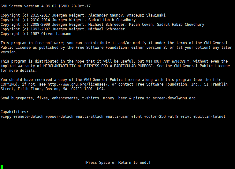 终端输入screen,如果出现Command not found表明当前设备未安装screen