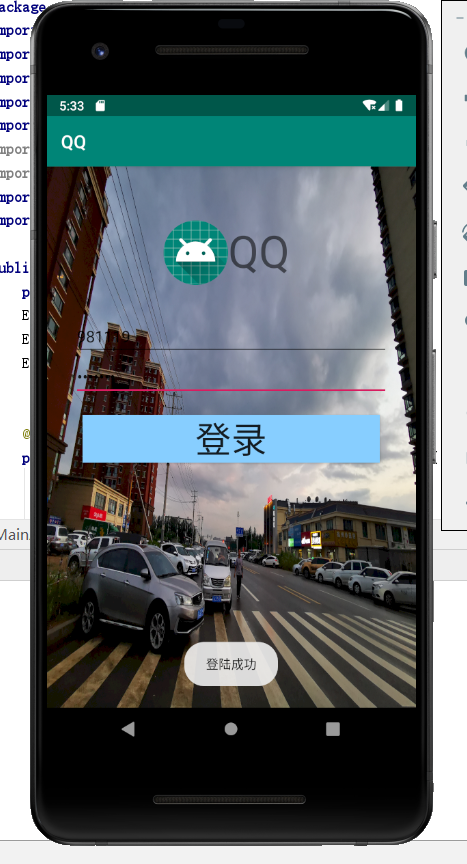 <?xml version="1.0" encoding="utf-8"?> <RelativeLayout xmlns:android="http://schemas.android.com/apk/res/android" android:layout_width="match_parent" android:layout_height="match_parent" android:background="@mipmap/p1"> <LinearLayout android:layout_width="match_parent" android:layout_height="wrap_content" android:layout_marginTop="30dp" android:orientation="vertical" android:padding="30dp"> <TextView android:id="@+id/text1" android:layout_width="wrap_content" android:layout_height="wrap_content" android:layout_marginLeft="100dp" android:drawableLeft="@mipmap/ic_launcher" android:text="QQ" android:textSize="50sp" /> <EditText android:id="@+id/edt1" android:layout_width="match_parent" android:layout_height="match_parent" android:layout_marginTop="35dp" android:hint="QQ号/邮箱/手机号" /> <EditText android:id="@+id/edt2" android:layout_width="match_parent" android:layout_height="match_parent" android:hint="密码" android:password="true"/> <RelativeLayout android:layout_width="match_parent" android:layout_height="wrap_content" android:layout_marginTop="10dp"> </RelativeLayout> <Button android:id="@+id/btn1" android:layout_width="match_parent" android:layout_margin="10dp" android:layout_height="wrap_content" android:text="登录" android:textSize="40sp" android:background="#87CEFF" android:onClick="click" /> </LinearLayout> </RelativeLayout>