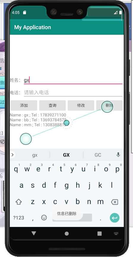 Toast.makeText(this,"信息已删除",Toast.LENGTH_SHORT).show();