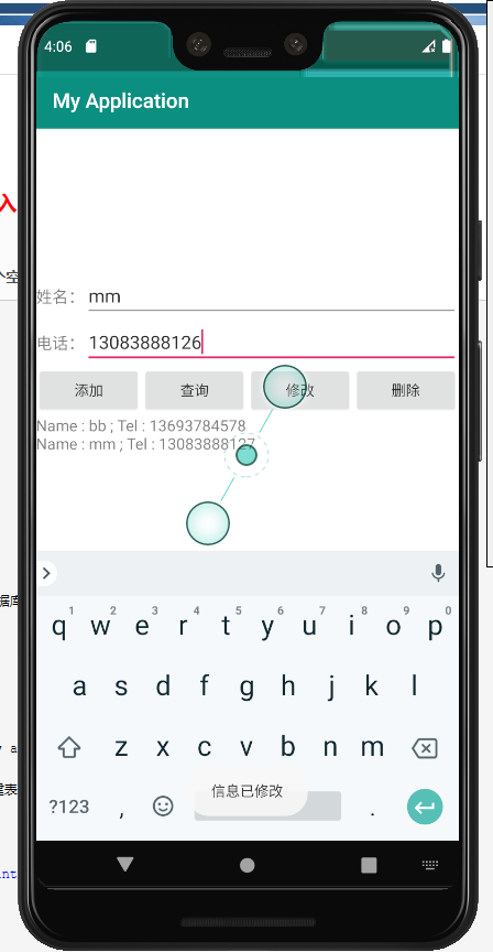 Toast.makeText(this,"信息已添加",Toast.LENGTH_SHORT).show();