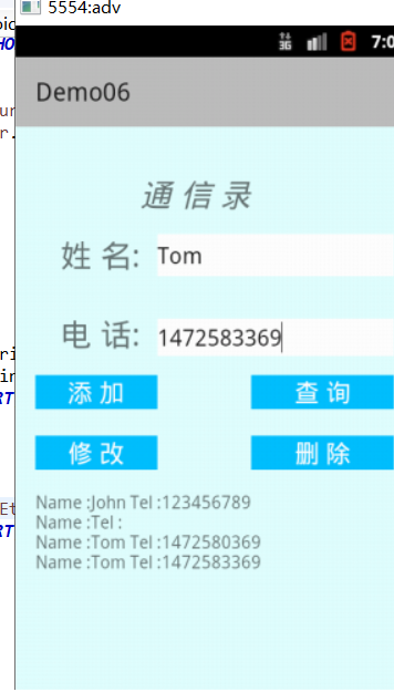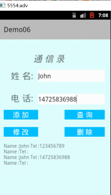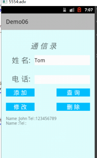 +"Tel :"+cursor.getString(cursor.getColumnIndex("phone")));