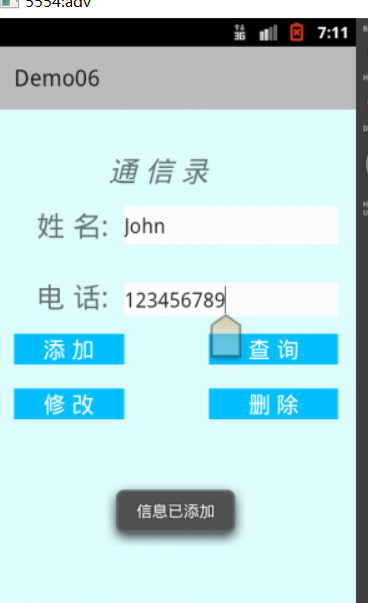 Toast.makeText(this, "信息已添加", Toast.LENGTH_SHORT).show();