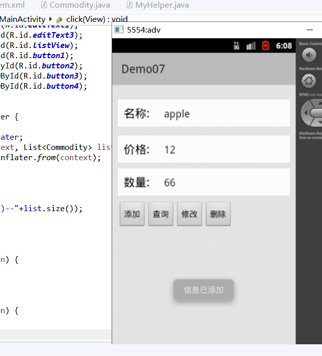 Toast.makeText(this, "信息已添加", Toast.LENGTH_SHORT).show();