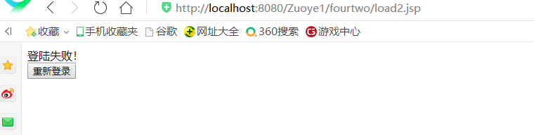 <%@ page language="java" contentType="text/html; charset=utf-8" pageEncoding="utf-8"%> <!DOCTYPE html PUBLIC "-//W3C//DTD HTML 4.01 Transitional//EN" "http://www.w3.org/TR/html4/loose.dtd"> <html> <head> <meta http-equiv="Content-Type" content="text/html; charset=utf-8"> <title>登录</title> </head> <STYLE type="text/css"> td{font-size:12px} </STYLE> <SCRIPT type="text/javascript"> function checkLogin(){ var userName=document.myform.userid.value; var userPass=document.myform.passwd.value; var vegName=/^[a-zA-Z0-9]+$/; if(!vegName.test(userName)){ alert("用户名错误,请重新输入"); document.myform.userid.focus(); return false; } var regPwd=/^\w{6,}$/; if(!regPwd.test(userPass)){ alert("密码输入错误,请重新输入"); document.myform.passwd.select(); return false; } return true; } </SCRIPT> </HEAD> <BODY> <FORM NAME="myform" METHOD="POST" action="load2.jsp" > <TABLE align="center"> <TR> <TD> <IMG src="Snap1.jpg"><DIV style="position:absolute; left: 490px; top: 216px; width: 356px;"> <TABLE width="100%" height="100%" border=0 cellPadding=0 cellSpacing=0> <TBODY> <TR vAlign=top> <TD width="23%" height=27 align=right class=bld>用户名: </TD> <TD height="27" align=left><INPUT TYPE="text" SIZE="20" NAME="userid"><BR>用户名由字母和数字组成</TD> </TR> <TR vAlign=top> <TD class=bld align=right height=27>密码: </TD> <TD height="27" align=left><INPUT TYPE="password" SIZE="20" NAME="passwd"><BR>密码由字母、数字和下划线组成,至少6位</TD> </TR> <TR vAlign=top> <TD class=bld align=right height=40> </TD> <TD align=left valign="middle"><A href="#"><INPUT name="submit" type="image" src="login.gif" width="101" height="22" border="0" ></A> </TD> </TR> </TABLE></DIV> </TD> </TR> </TABLE> </FORM> </BODY> </HTML> 复制代码 load2.jsp 复制代码 <%@ page language="java" contentType="text/html; charset=utf-8" pageEncoding="utf-8"%> <!DOCTYPE html PUBLIC "-//W3C//DTD HTML 4.01 Transitional//EN" "http://www.w3.org/TR/html4/loose.dtd"> <% String name=request.getParameter("userid"); String upw=request.getParameter("passwd"); if(name.equals("lucky")&&upw.equals("123456")){ //跳转到ok页面 request.getRequestDispatcher("ok.jsp").forward(request, response); }else{ //跳转到No页面 request.getRequestDispatcher("no.jsp").forward(request, response); } %> 复制代码 ok.jsp 复制代码 <%@ page language="java" contentType="text/html; charset=utf-8" pageEncoding="utf-8"%> <!DOCTYPE html PUBLIC "-//W3C//DTD HTML 4.01 Transitional//EN" "http://www.w3.org/TR/html4/loose.dtd"> <html> <head> <meta http-equiv="Content-Type" content="text/html; charset=utf-8"> <title>Insert title here</title> </head> <body> 你好:lucky! </body> </html> 复制代码 no.jsp 复制代码 <%@ page language="java" contentType="text/html; charset=utf-8" pageEncoding="utf-8"%> <!DOCTYPE html PUBLIC "-//W3C//DTD HTML 4.01 Transitional//EN" "http://www.w3.org/TR/html4/loose.dtd"> <html> <head> <meta http-equiv="Content-Type" content="text/html; charset=utf-8"> <html> <body> 登陆失败! <form name="form1" method="post" action="enter.jsp"> <tr > <td colspan="2" align="center" > <input type="submit" name="Submit" value="重新登录"> </td> </tr> </form> </body> </html>