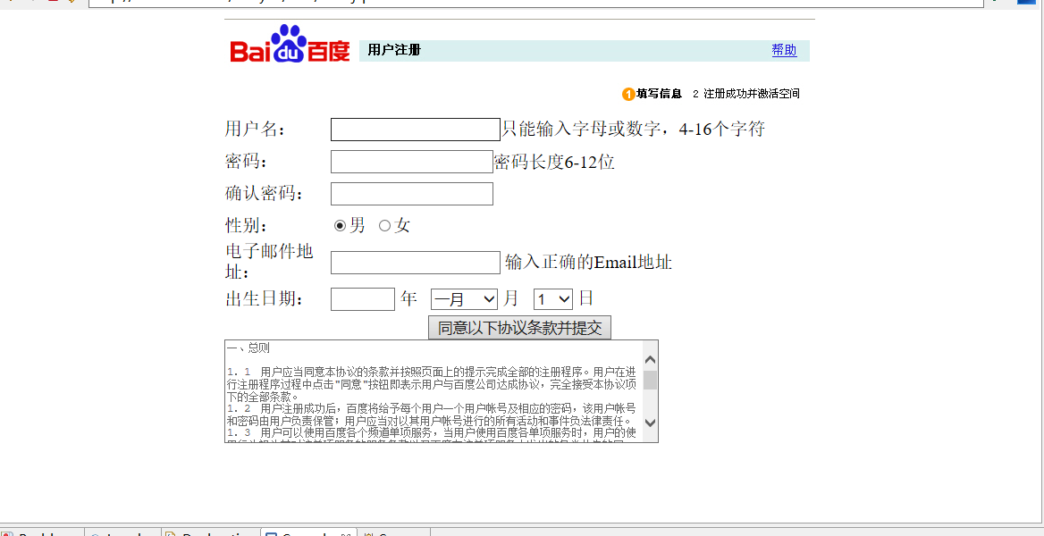 1.1 用户应当同意本协议的条款并按照页面上的提示完成全部的注册程序。用户在进行注册程序过程中点击"同意"按钮即表示用户与百度公司达成协议,完全接受本协议项下的全部条款。