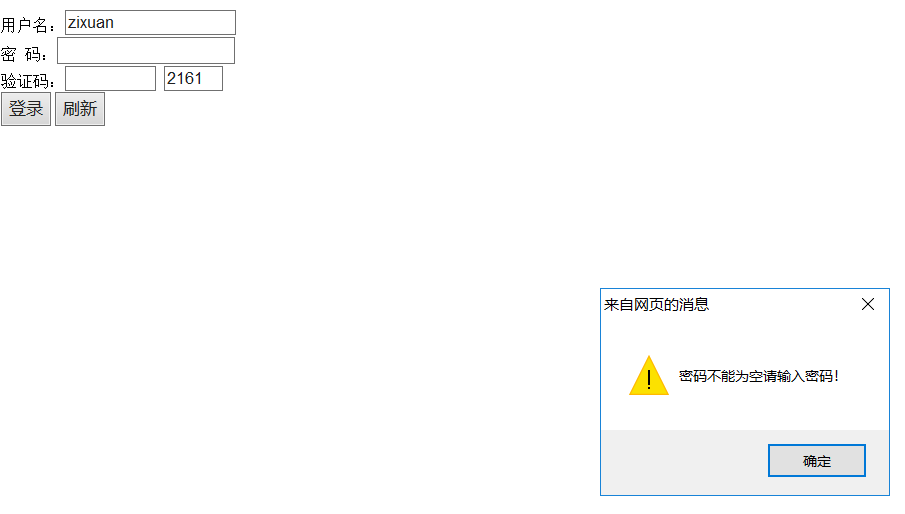 alert("密码不能为空请输入密码!");