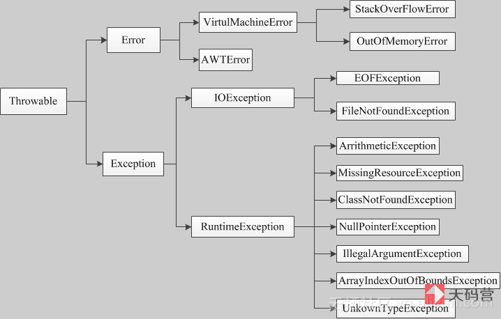 Java吧异常当做对象来处理,并定义一个基类java.lang.Throwable作为所有异常的超类。