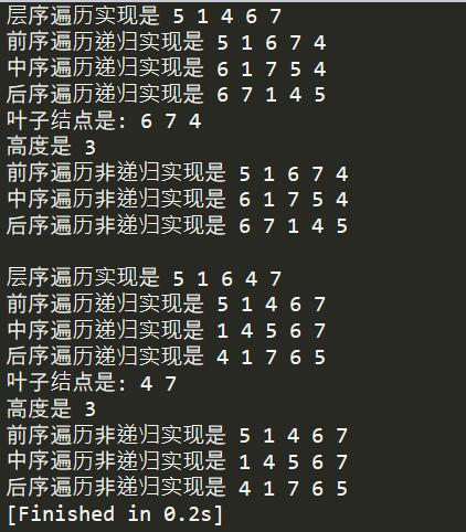 print("\n中序遍历非递归实现是",end=" ")