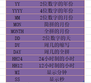 - TO_CHAR(date[,fmt[,nlsparams]]):将日期类型数据 date 按照 fmt 的格式输出字符串。nlsparams 用于指定日期语言。