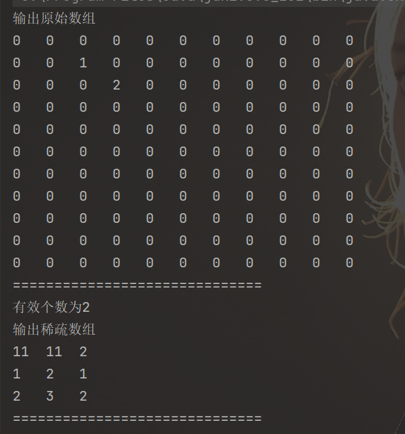 int [][] array1= new int[sum+1][3]; //sum+1 有效数+1 为稀疏数组的行数, 3 为固定的三列