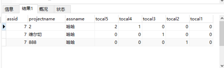 ,COUNT(if(score ='1',a.project_id,null)) AS tocal1 FROM