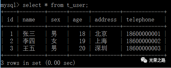 1. 例如我们需要向一个用户表(t_user)中load三条数据,假设数据和格式如下: