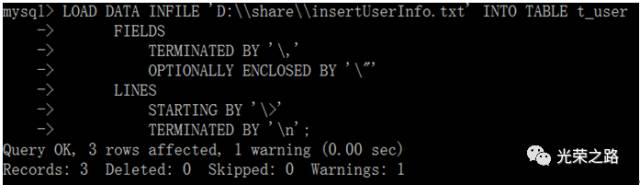 LOAD DATA INFILE'D:\\share\\insertUserInfo.txt' INTO TABLE t_user