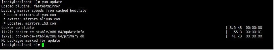 docker要求CentOS在7.0以后的版本,如果你的系统版本还在7.0以前,请先升级一下版本在进行安装,同时不支持32位的系统,内核版本至少3.10。请先确保没有安装过docker,否则有可能会导致安装失败,如果之前安装过,可以尝试直接yum isntall -y docker1.更新软件源第一个命令yum update