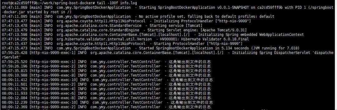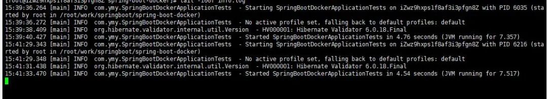15:29:20.599 [main] INFO com.ymy.SpringBootDockerApplication - Started SpringBootDockerApplication in 1.664 seconds (JVM running for 4.04)