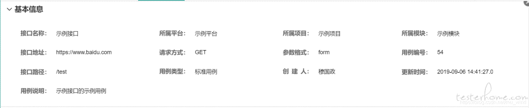 1、基本信息:用例的描述性信息,自动读取。其中,所属平台、所属项目、所属模块等信息,读取自用例所属的模块,接口名称、接口路径等读取自用例所属的接口。2、请求参数,包括请求头和请求体两部分。