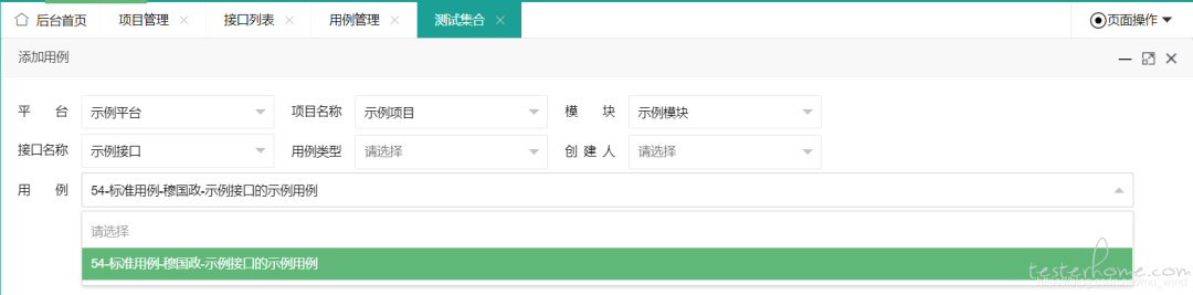 - 用例依赖于接口而存在,只有在接口列表页创建了某个接口后,才能在此页面创建该接口的用例,用例将自动继承所属接口和模块的属性,比如 IP 地址和路径等。