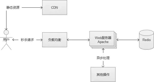 一个秒杀或者抢购页面,通常分为2个部分,一个是静态的HTML等内容,另一个就是参与秒杀的Web后台请求接口。