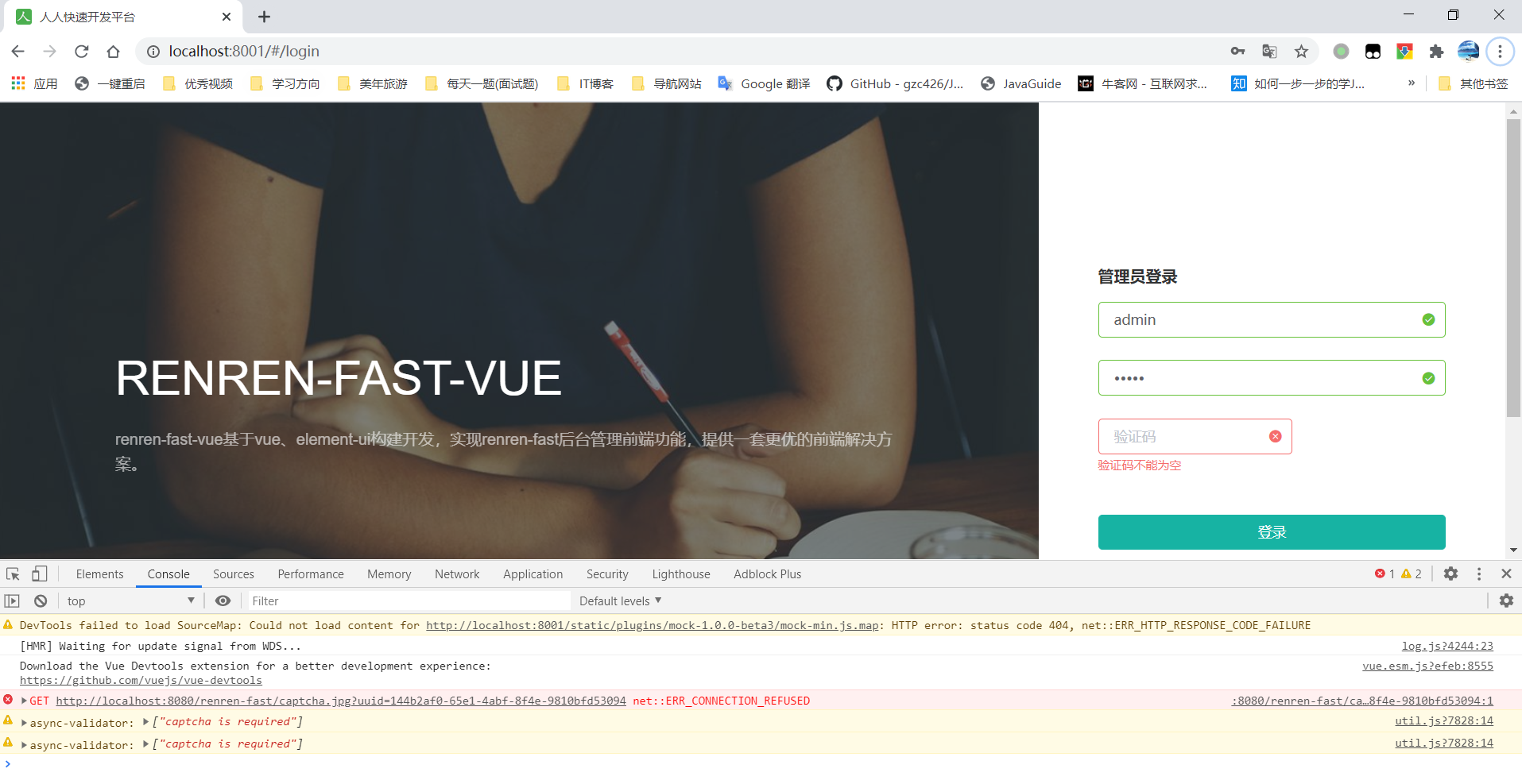 人人开源项目登录时无法显示验证码