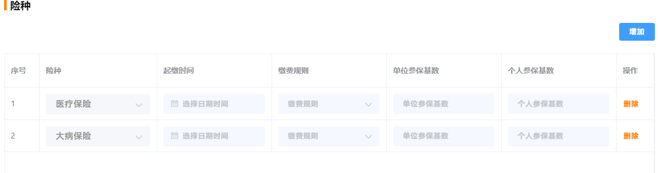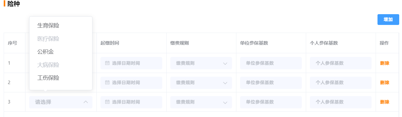 再新增一条时,已经选择的医疗和大病就不能选择了