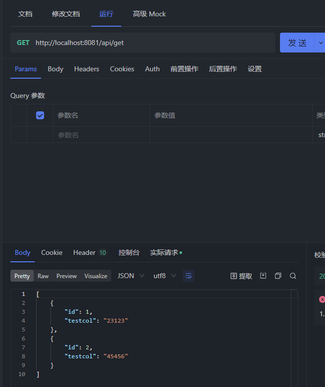 也可以将全部sql写在一个文件里,然后引用就可以了,因为是测试接口,就简单写了个大概,然后你数据库里建一些东西,试试能不能查出来,如果可以,就说明接口是通的,没有问题