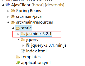 3、客户端工程static目录下新增index.html,并在其中编写jasmine测试用例