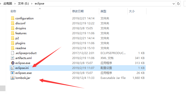 2.将下载的lombok.jar,放到跟eclipse.ini文件平级:
