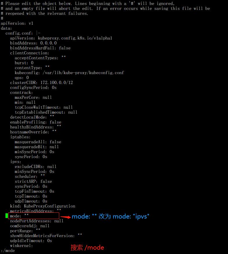 kubectl edit cm kube-proxy -n kube-system