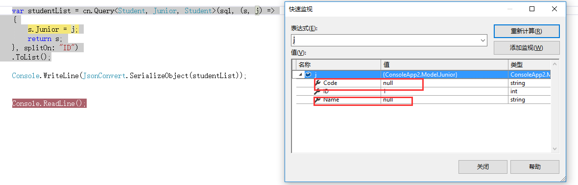 最近在学习使用Dapper时百度了一篇详细使用教程,在做到多表查询的时候,出现如下情况。