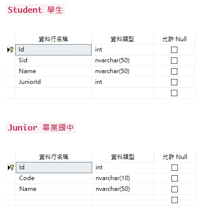 1 SELECT * 2 FROM [Student] AS A 3 inner JOIN [Junior] AS B ON B.ID=A.JuniorId